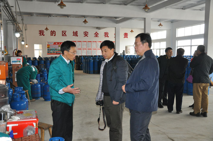 2014年12月9日,鄭州市城管局副局長(zhǎng)韓永進(jìn)、周愛(ài)華、鄭州市公用集團(tuán)監(jiān)事會(huì)主席張雷等一行8人在煙臺(tái)市供熱燃?xì)夤芾硖幐碧庨L(zhǎng)李志強(qiáng)的陪同下到我公司考察指導(dǎo)智能鋼瓶置換工作,在白石路供氣站、婁子山充裝站和鋼瓶檢驗(yàn)車間現(xiàn)場(chǎng),徐立光常務(wù)副總經(jīng)理就我公司智能鋼瓶置換和鋼瓶報(bào)廢的相關(guān)情況向客人們做了詳細(xì)介紹。