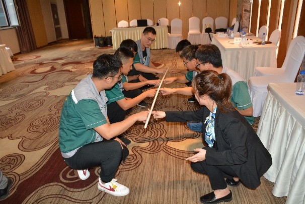 團隊精神是企業(yè)的靈魂,企業(yè)的發(fā)展壯大離不開優(yōu)秀的團隊。在團隊熔煉環(huán)節(jié),人力資源部為大家精心準(zhǔn)備了3個室內(nèi)拓展游戲。所有學(xué)員分為兩組,在引導(dǎo)師的細心引領(lǐng)下,各組學(xué)員通過不斷嘗試、相互交流、總結(jié)分享,從最開始的分歧不斷,到最后的團結(jié)一心,學(xué)員們在游戲中彼此熟悉了解、相互磨合,找到自己在團隊中的位置,領(lǐng)會團結(jié)合作的重要性,最終緊緊擁抱在一起,完成了由學(xué)習(xí)小組到一個團隊的巨大轉(zhuǎn)變,從而實現(xiàn)了本環(huán)節(jié)的最終目的。